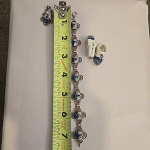 Vintage Dutch Delft Blue Jewelry Set + Mini Clogs Holland Windmill Motif 4 item