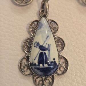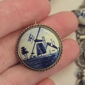 All pieces showcase classic blue-and-white Dutch Delft artwork, traditional windmills, and charming vintage craftsmanship. Perfect for collectors of Delftware, European travel souvenirs, or unique vintage jewelry.