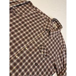 Vintage Duxbak Plaid Flannel Men’s Large Grey Orange Cotton Button Up Shirt