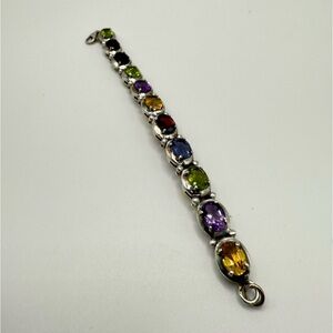 Vintage Dwarka India Multi-Stone Sterling Silver 925 Tennis Bracelet 7.5”