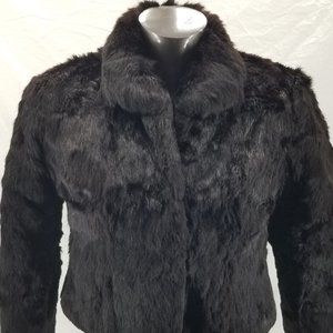Vintage Dyed Black Rabbit Fur Neck Wrap Coat Womens Winter Jacket large