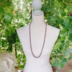 Vintage Dyed Stone Bead Opera Length Necklace Red Blue Green Hand Knotted