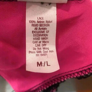 Vintage neon pink satin and black lace garter belt.