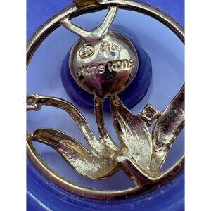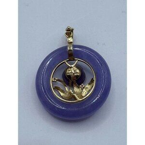 An elegant vintage pendant featuring a lavender jadeite circle accented with a 14K floral design and an amethyst rose center, crafted in Hong Kong.