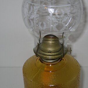 Vintage EAGLE Yellow Amber Kerosene Oil Lamp. Beaded Beaded - Glass pressed A