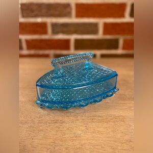 Vintage EAPG Glass Delphite Blue Iron Shape Criss Cross Butter/Candy Dish
