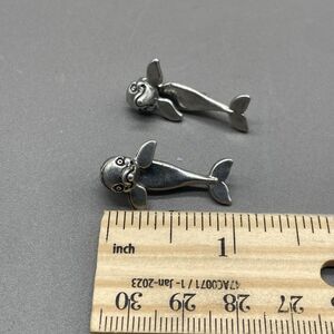Vintage EARlusion Earrings 3D Pewter Dolphin Studs Silver Tone