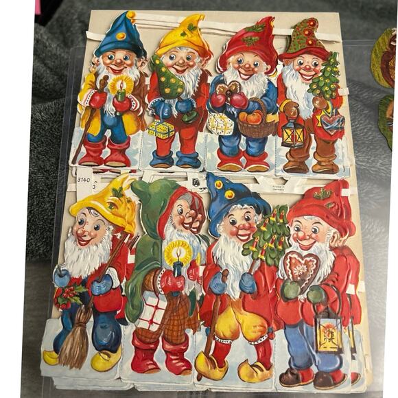Vintage EAS Germany Die Cut Paper Scraps Christmas Elves Gnomes EAS 3140