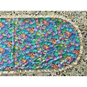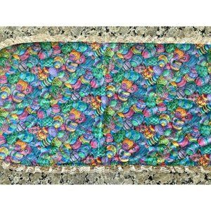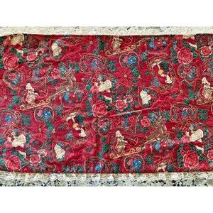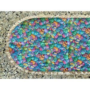 Vintage EASTER and CHRISTMAS Reversible TABLE RUNNER Oval with Lace Trim 41"x18"