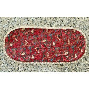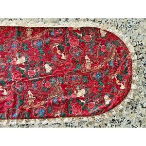 Vintage Reversible Christmas / Easter Table Runner Oval with Lace Trim