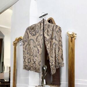 Vintage ECHO 1960s Silk Scarf Wrap Cream LARGE 50”x 10.5”