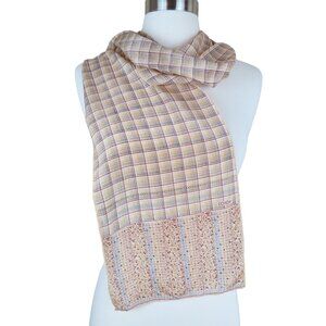 Vintage ECHO Autumnal Long Silk Scarf 57"x9" Muted Plaid Floral Border