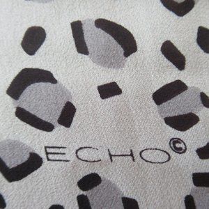 Vintage ECHO SILK SCARF Animal Print Gray, Black, White 14" X 58"