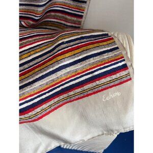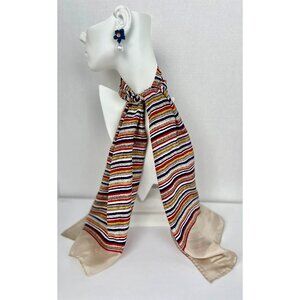 Vintage ECHO Silk Scarf 15"W x 46"L Navy Red Taupe Yellow Gold Horizontal Stripe