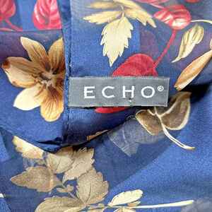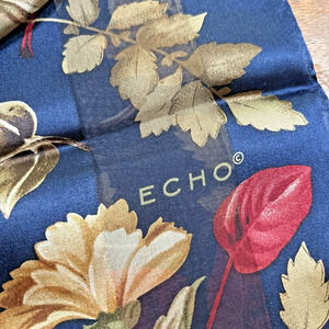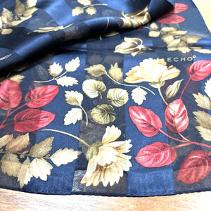 Vintage ECHO Silk Scarf - gorgeous Navy Blue base color in long burnout stripes with Autumn colors in reds and greens making a floral design along the length of the scarf. Clearly tagged - super soft - a luxury to wear! In excellent condition - no damage or flaws - so pretty!