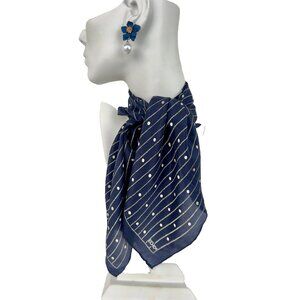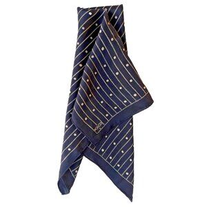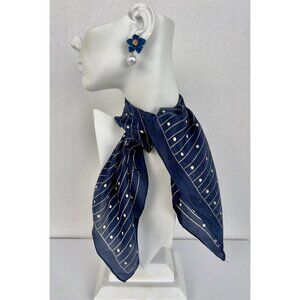 Vintage ECHO Silk Scarf Navy Off-White Classic Nautical 20.5"W x 21"L Handrolled Hem