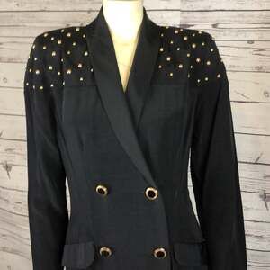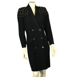Vintage E.D. Michael by Melanie Drucker coat dress gold studs shawl collar small