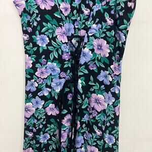 E.D. Michaels by Melanie Drucker vintage floral dress. Scoop neck. Sleeveless. Keyhole in back. Contrasting black lace up in back. Unlined. Maxi length. Great used condition. No stains, tears or holes.