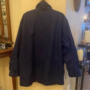 Pre-owned in great condition with no rips or stains. Men’s navy wool plaid lining parka jacket. Zipper and snap button closure. Missing the hoodie. Made in Korea. Comes from smoke and pet free home.