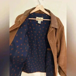 Vintage EDDIE BAUER cotton corduroy barn chore jacket leather collar sz L/ xL