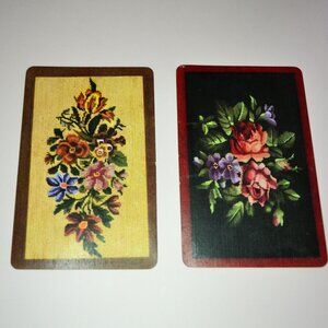 These vintage playing cards were made by EE Fairchild Corp in Rochester, NY. The pattern is of a needlework design known as petit point.
