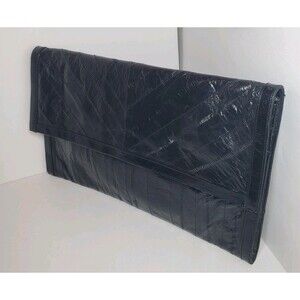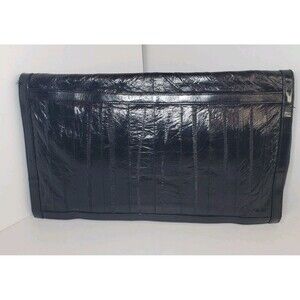 Vintage EEL Skin Leather Clutch Black Slim Envelope Style Purse 10 in x 6 Korea