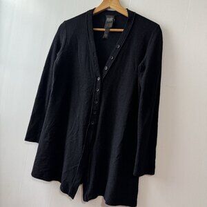 Vintage EILEEN FISHER 100% Wool Cardigan Sz PP Black Button Front Women’s