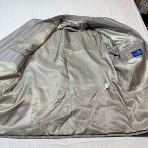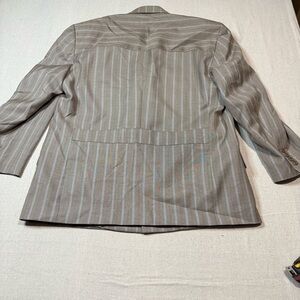 Vintage EJ Samuel 2 Piece Suit + Handkerchief Brown Striped Blazer 46R Pants 40R Blazer does include an EJ SAMUEL PIN See pictures for reference and measurements