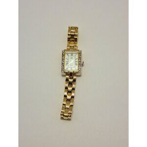Vintage EJ Womens Quartz Gold Tone With Rhinestones Analog Watch
