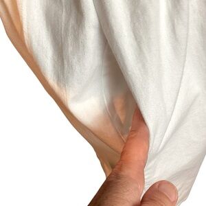 Elastic waistband with cotton drawstring (does not draw in, ties only) and hook (eye missing, easily replaced, not necessary with tie)