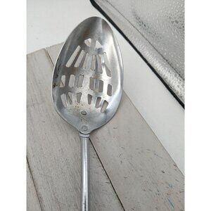 Vintage EKCO A&J Slotted Serving spoon Wood Handle 12"