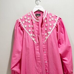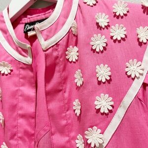 Vintage ELAINE STUART Women’s Pink Daisy Appliqué Button Down House Dress L