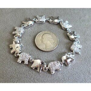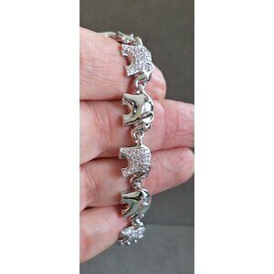 Vintage figural solid sterling silver & cz elephant link bracelet