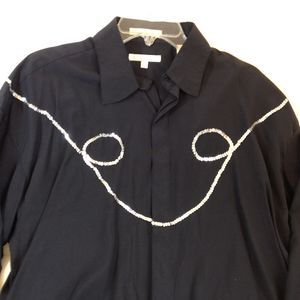 Vintage ELLIOTT Dress Shirt Button Up Black Long Sleeve Cowboy Design Mens L