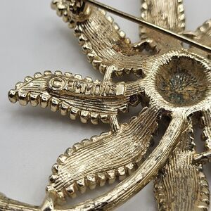 Vintage EMMONS Bezel Set White Gold Tone Flower Brooch Pin 2.5in