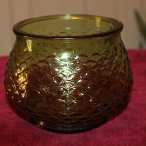 Vintage EO Brody Co Glass Emerald Green Fish Scale Pattern Bowl or Wide Vase