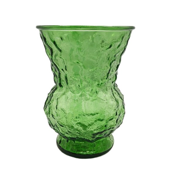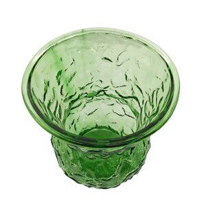 Vintage E.O. Brody Crinkle Glass Flower Vase Emerald Green Flared 60s 70s MCM