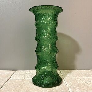 Vintage E.O. Brody Emerald Green Textures Ringed Glass Bud Flower Vase 7" Tall