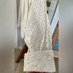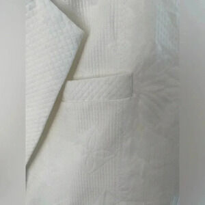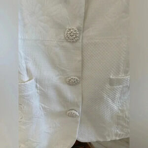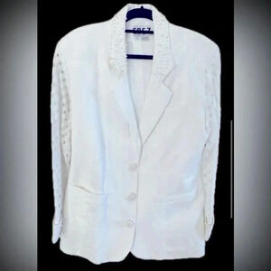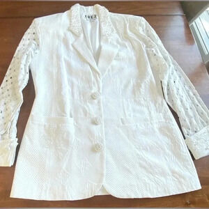 Vintage EREZ Cotton White Blazer Eyelet Long Sleeves Pearl Details Large EUC