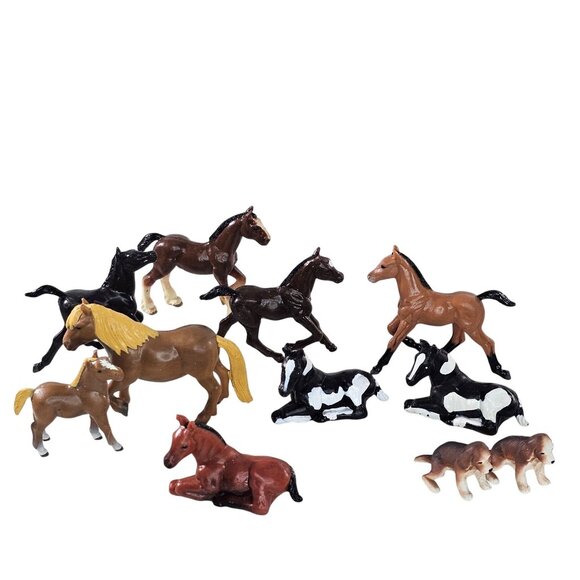 Vintage ERTL Farm Animal Horse & Dog Figurines Set Of 11 Miniature Toys