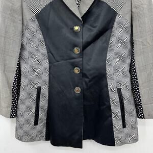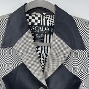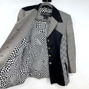 Vintage ESCADA Margaretha Ley Blazer Jacket 36 6 Black White Futuristic Silk