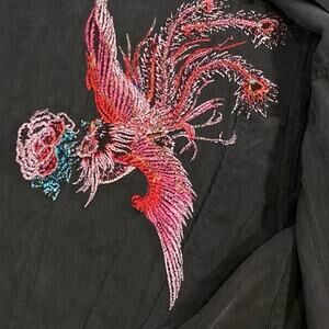 Vintage ESCADA SPORT Blazer Jacket 36~S SILK Black/Grey Pink-Embroidery-Peacock