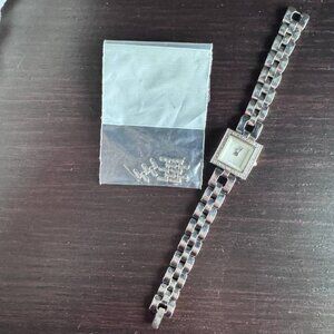 It has minor scratches on band, very hard to see on pictures, but is in overall great condition. All diamonds are intact! Brand new battery just recently installed! Comes with original additional links and pins to accommodate all wrist sizes! Purchased at Bloomingdale’s, but no longer have the box or receipt. Will ship beautifully wrapped in a different box!
