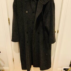 Vintage ESSENTIEL Women's Full Length Coat Overcoat Mohair Wool Alpaca Hooded Size Large EU 38