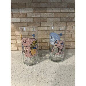 Set of 2 vintage 1982 E.T. tall drinking glasses from Pizza Hut, no chips no cracks smoke free home. View all photos for details on condition before you buy. Thank you for looking check out my other items!