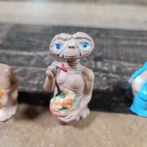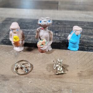 This vintage ET lot is out of this world! It includes an Avon Touch of Love broach lapel pin and a ceramic ET figure with two smaller figures. Perfect for any ET fan or collector. Add some extra-terrestrial charm to your collection today!