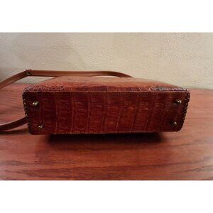 Beautiful Vintage ETCO Genuine Alligator Multi Section Handbag Shoulder Bag Convertible. Very good vintage condition. Has two separate compartments which is nice for a tablet or other items. Has a small area of wear on top in the crease. A section of one strap has leather covering worn off. There are couple of small dots in the inside lining. See last photos. Zoom for your review all photos.