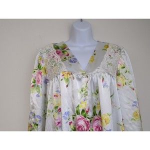 Vintage EVE STILLMAN Nightgown Gown Floral Lace Cottagecore Satin Pockets Small