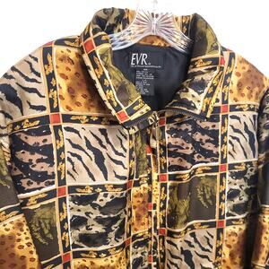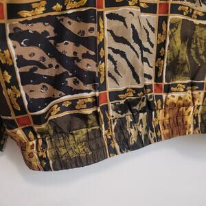 Vintage EVR 100 % Silk Patchwork Animal‑Print Bomber Jacket L Lined Zip Front