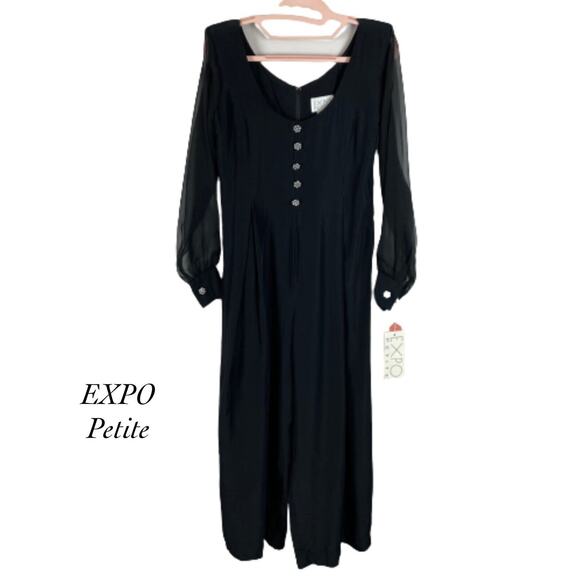 Vintage EXPO Petite Black Jewel Button Wide Leg Jumpsuit NWT Size 2 Made in USA.